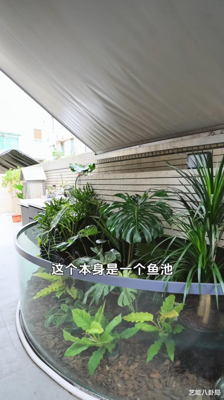 鸳侣俩还将原来的鱼池,篡改成了种满盆栽的“小植物园”。