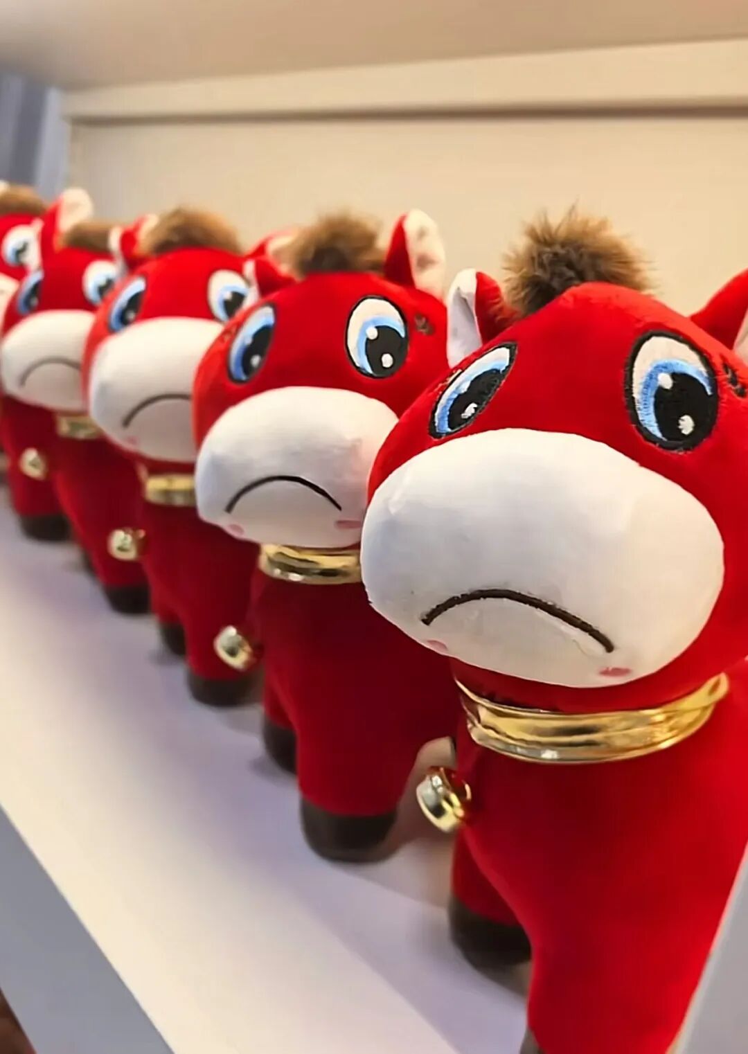 哭哭马的“瑕疵”,恰恰让它在一群中规中矩的同类中有了吸睛的特质,特别是下垂的嘴角、略带呆滞的眼神,以及“被迫”穿着喜庆红装的造型,精准诠释了当代人“表面笑嘻嘻,内心哭唧唧”的精神面貌,它做工不完美,但是它做到了“正中下怀”。