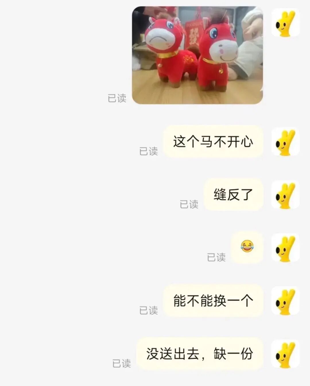 哭哭马的诞生本身纯属意外。2026年1月,浙江的一位顾客订购20只毛绒马后,发现其中一只嘴角缝反并向商家反馈换货,商家补发正品后未收回瑕疵品。顾客于1月4日将这段对话分享至短视频平台,意外引发连锁反应——该视频转发量达55.7万、点赞量达42万,该顾客的粉丝数也从个位数暴涨至2000余人。