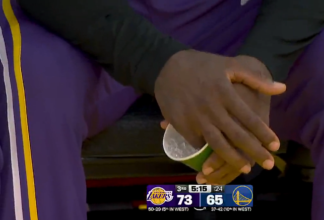 詹姆斯莫得复返更衣室,在替补席进行冰敷措置。