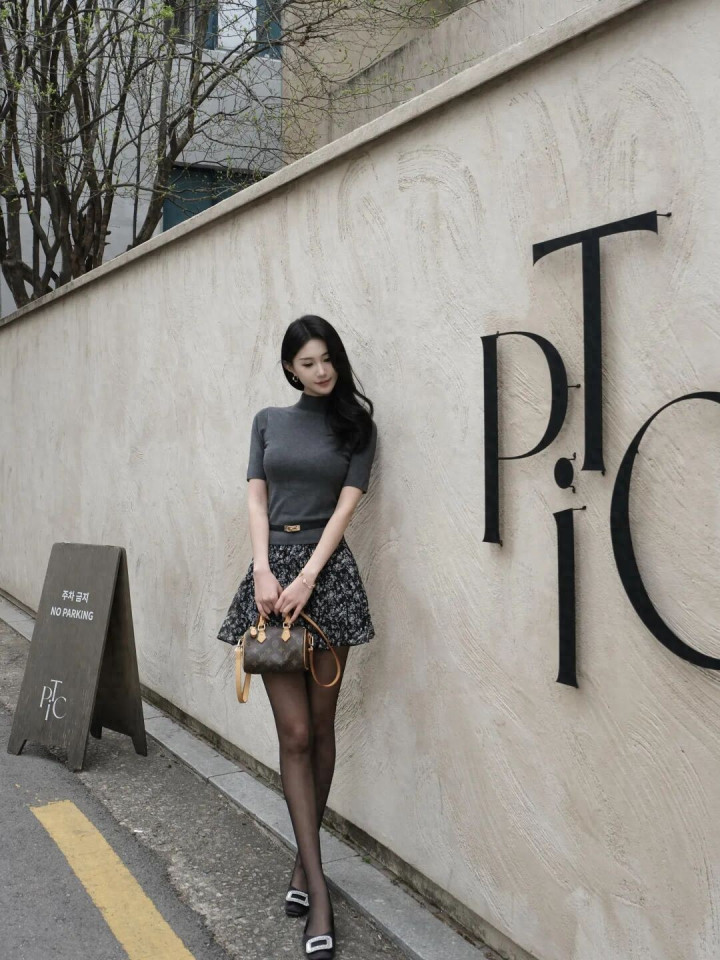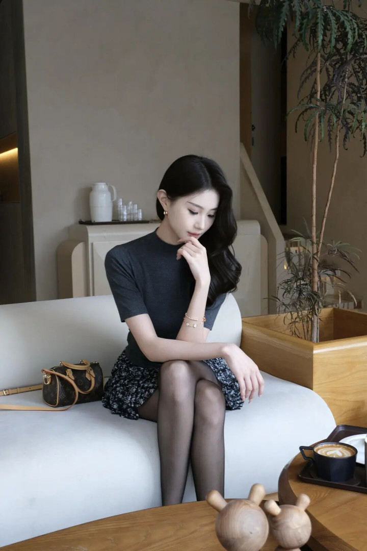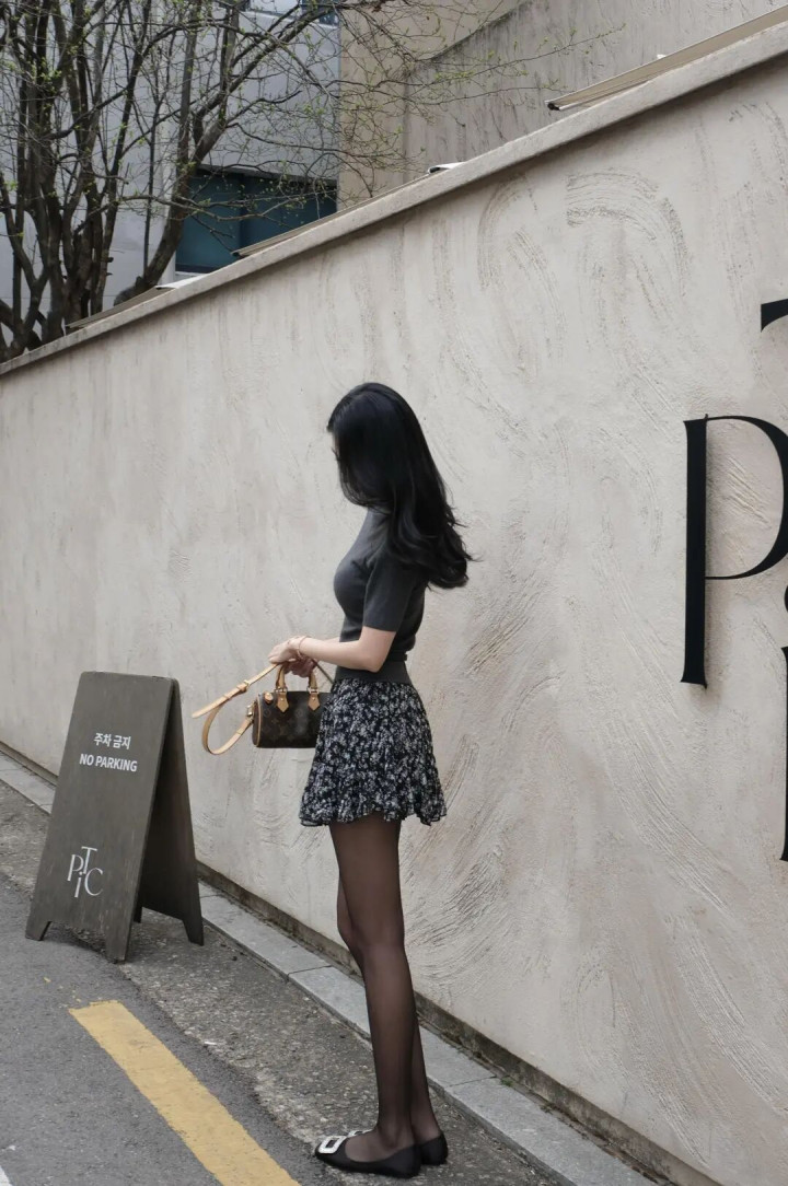 澳洲幸运8 颜值穿搭: 灰T+碎花裙+钻饰平底鞋