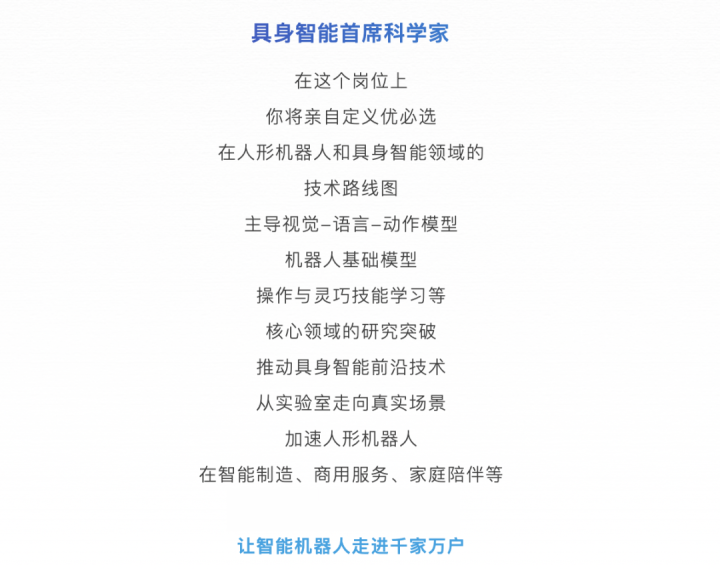 这次招聘的中枢标的,是刻下机器东说念主最要道的时代领域——具身智能。