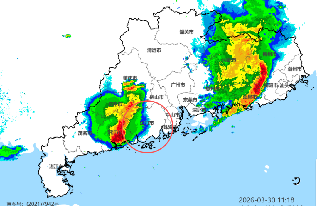 重心时段:30日清早和午后,31日午后,重心落区恩平、台山。