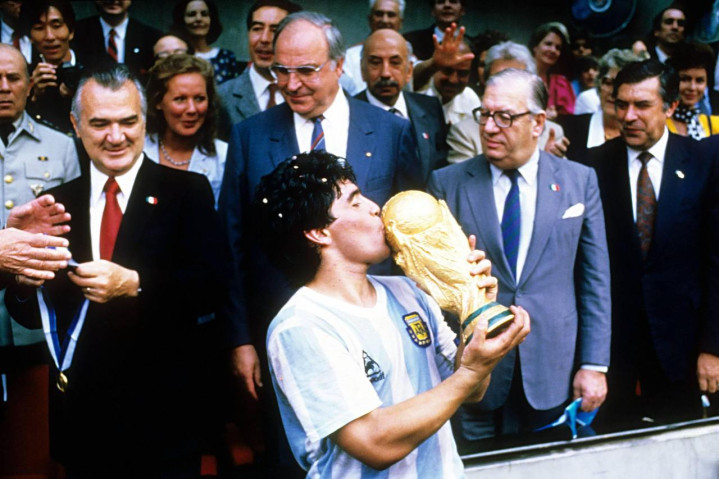 1986年墨西哥天下杯,阿根廷队最终夺冠,马拉多纳亲吻落拓神杯。图片