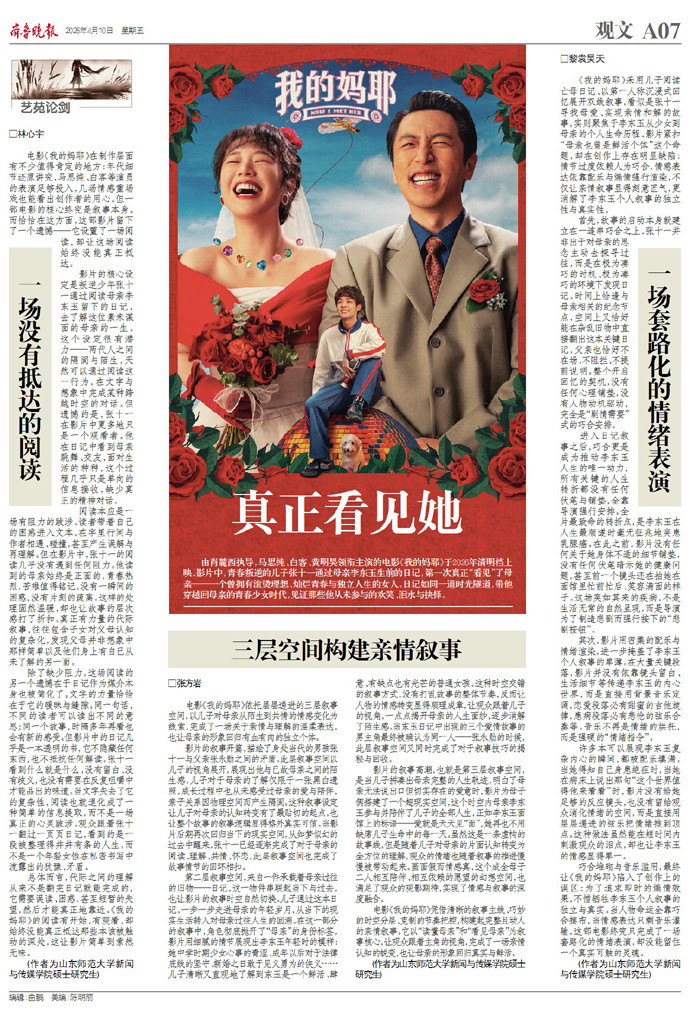 电影《我的妈耶》依托层层递进的三层叙事空间,以男儿对母亲从生分到共情的心情变化为萍踪,完成了一场对于亲情与贯通的温柔抒发,也让母亲的形象总结错落有致的孤独个体。