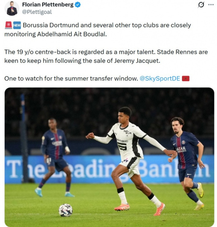 直播吧4月14日讯据德天外记者FlorianPlettenberg报说念,多特蒙德等多家顶级俱乐部正在密切热情雷恩年青中卫布德拉尔。