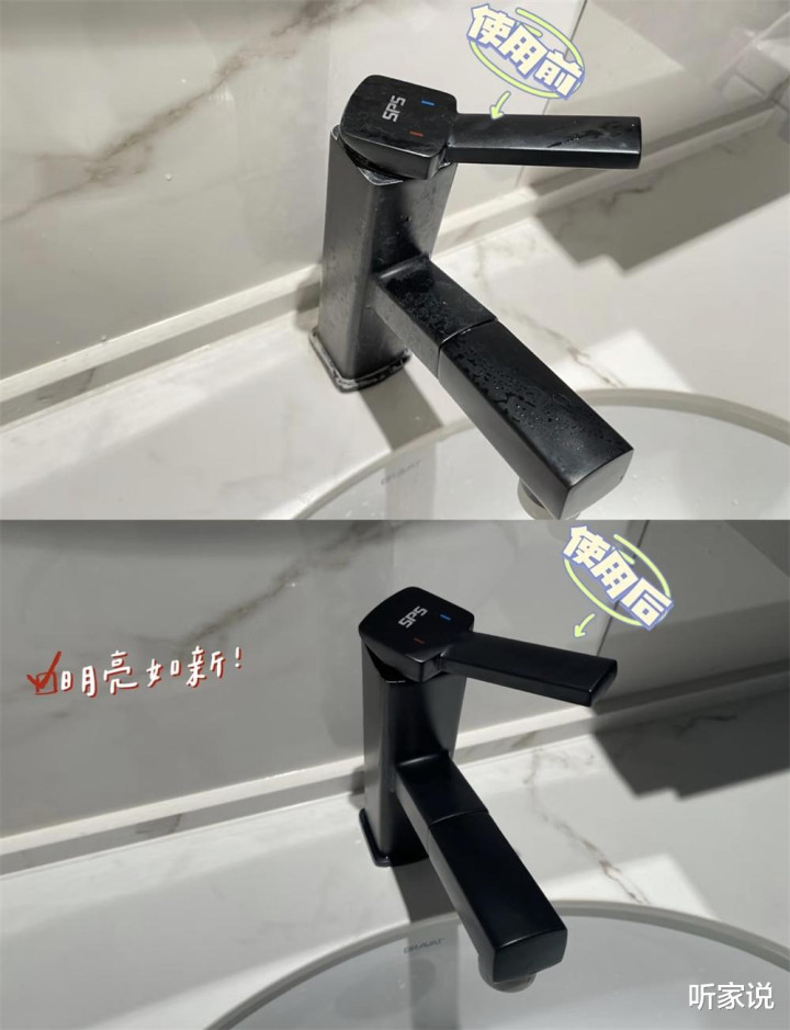 我承认,米兰app官网版刚装修好的时候还挺显高级的,但各位要知道,现在家里的水质都偏硬,再加上皂类、个护品的侵蚀,不出半年,家里的黑色洁具就会变得一片斑驳,显得格外脏旧。