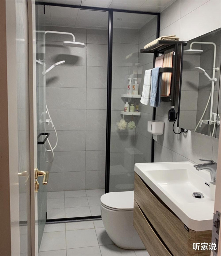要我说,家里的卫生间如果面积太小的话,干脆就别做干湿分离或者干湿分区了,一道玻璃推拉门装上,原本紧凑的卫生间就更显拥挤了,上厕所洗澡都憋屈。