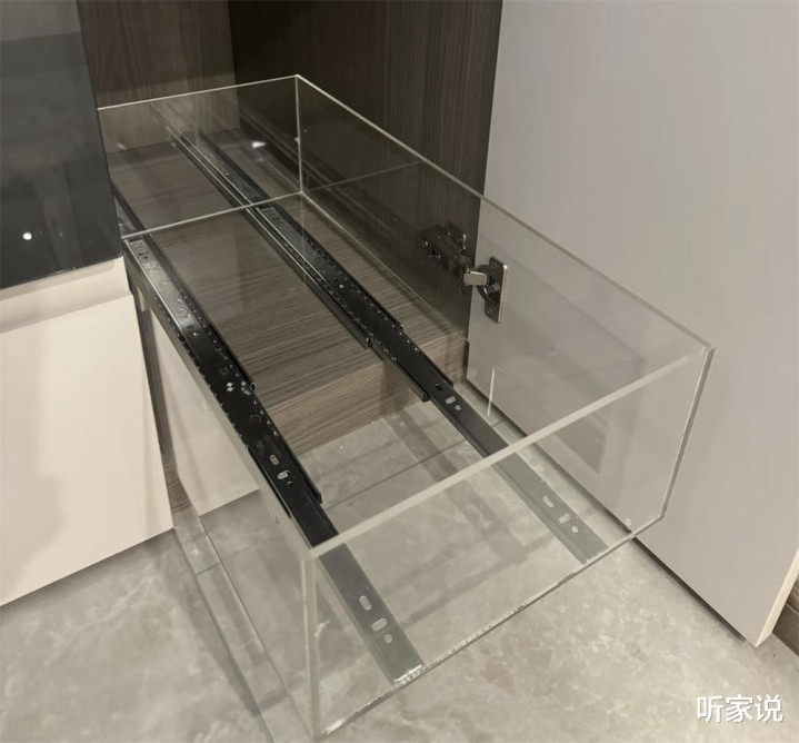 解决办法跟我上面说的玄关鞋柜差不多,就是装一些带滑轨的收纳抽屉,尽量去将柜子的深度优势发挥出来,如果又深又高的话,也可以在柜子里分层做两层滑轨抽屉,这样才能将60厘米的超深柜子化腐朽为神奇,充分利用起来。